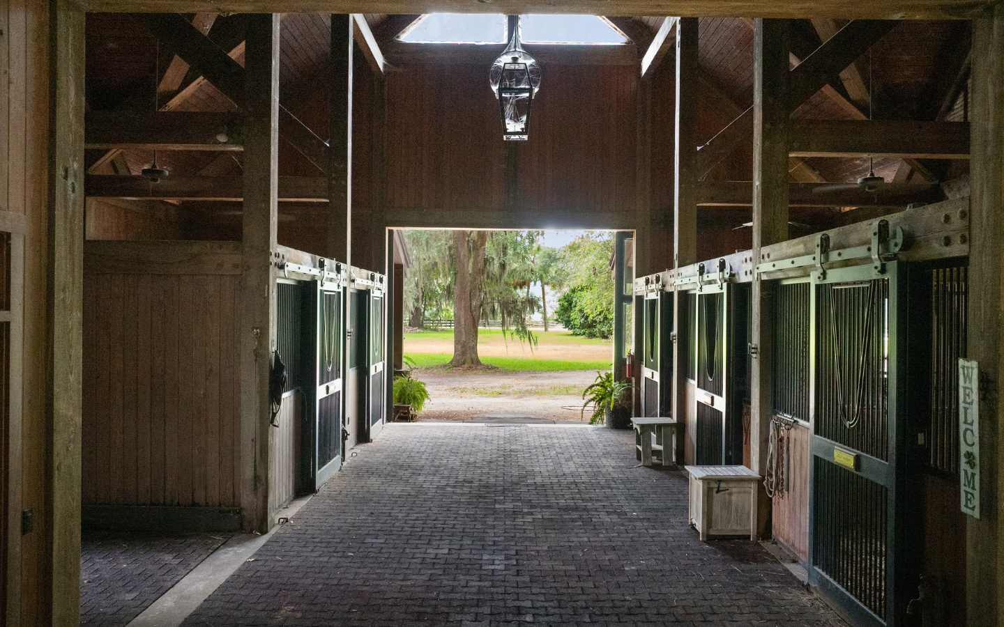 • Centre équestre primé avec écurie de 6 612 pieds carrés, 12 boxes, paddocks et manège couvert