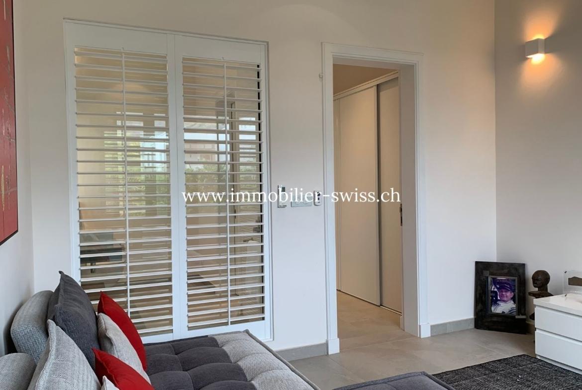 Également d’un salon et d’une salle à manger avec de grandes baies vitrées s’ouvrant sur la terrasse couverte assurant ainsi beaucoup de luminosité. Une chambre en suite se trouvant au rez-de-chaussée a été transformé en salon TV.