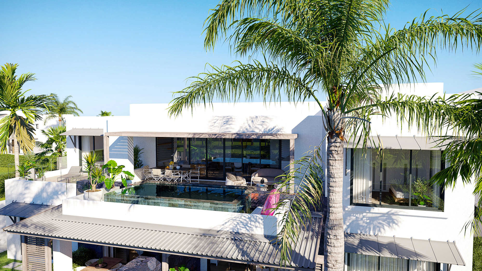 L’architecture des douze villas de 3 chambres illustre le style contemporain d’Azuri avec des lignes définies, des structures géométriques et l’utilisation de matériaux traditionnels mauriciens. Les résidences se mélangent parfaitement au cadre tropical et sont proposés avec piscine, gazébo et un jardin surplombant le parcours de golf qui illustre l’art de vivre à la mauricienne.